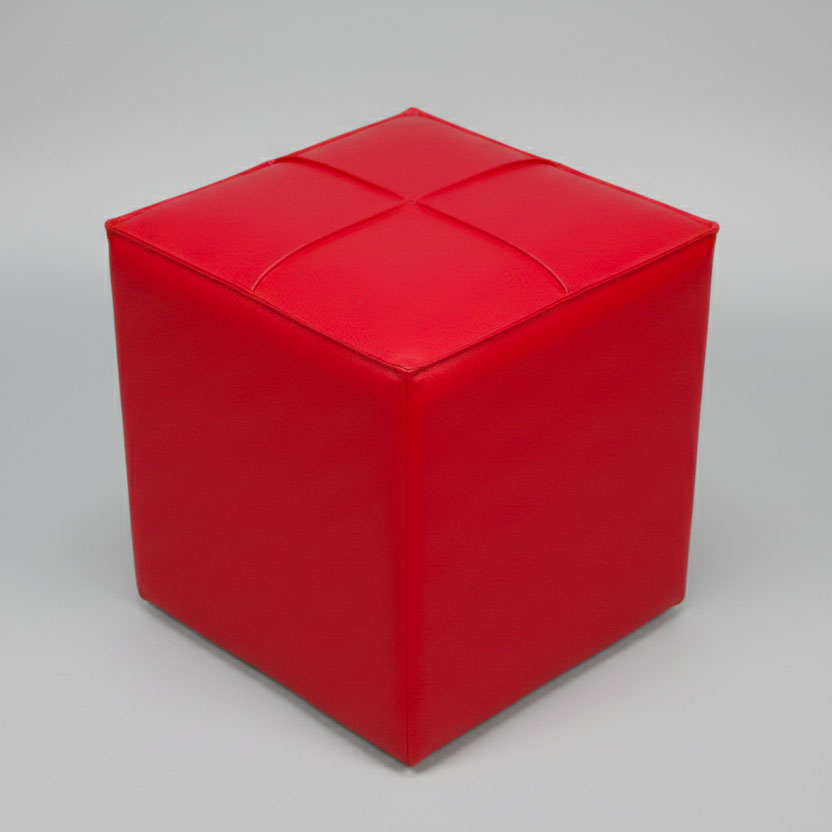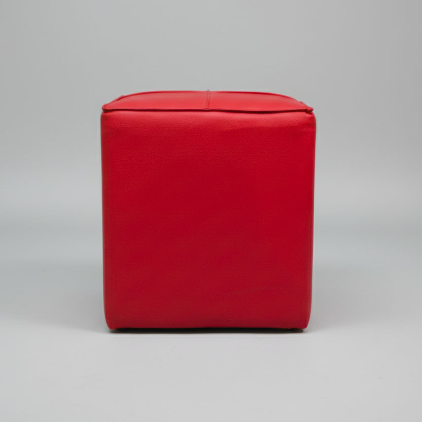 Pouf cubique moderne en simili cuir rouge vibrant